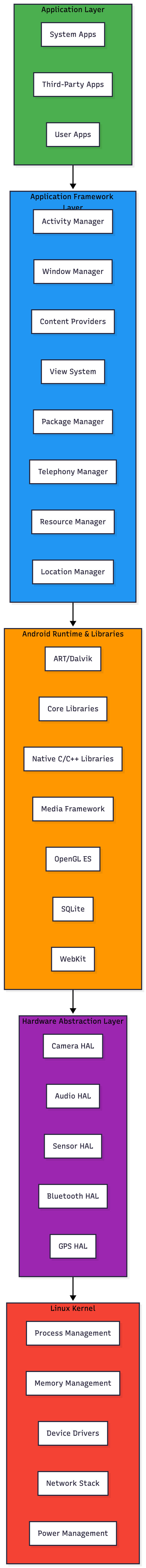 Android’s four-layer architecture is a masterpiece of software engineering that balances flexibility, security, and performance. By understanding how each layer works and interacts, developers can: